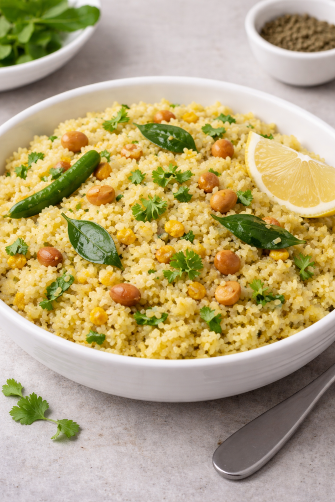 A light, tangy, and refreshing dish made with cooked millets, tempered spices, and fresh lemon juice. This healthier twist on traditional lemon rice is rich in fiber, easy to digest, and perfect for a balanced meal.